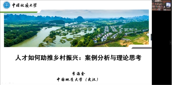 李海金教授作的报告报告从政策和实践层面阐述乡村人才振兴的重要性和必要性,结合宁夏、北京等地乡村人才振兴典型案例,介绍人才振兴的实现路径和基本模式,进而从人力资本、城乡融合、农民主体性三个层面作出理论解释与分析,最后从能力、权利、动力等维度提出未来乡村人才振兴的发展走向。