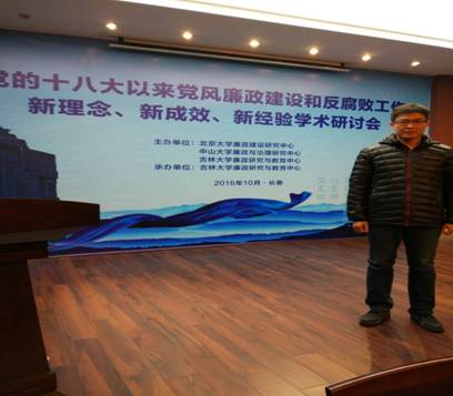 为深入总结全面从严治党成果,发挥高校廉政研究机构在党风廉政建设和反腐败斗争中“思想库”和“智囊团”作用,由北京大学、中山大学和吉林大学联合主办的“党的十八大以来党风廉政建设和反腐败工作新理念新成效新经验”学术研讨会于10月29日-30日在长春市召开。本次研讨会吸引了国内27所高校及相关研究机构50多名专家学者,收到论文106篇。会上,专家们围绕“党的十八大以来党风廉政建设”、“腐败治理”、“从严治党”和“纪检监察理论与实务”等专题进行了深入热烈的讨论交流。公司教师陈洪连副教授参加本次学术研讨会,就监督执纪“四种形态”问题同与会专家进行交流。