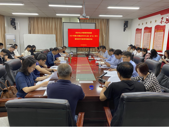 6月10日下午,政治与公共管理公司党委在太阳成集团tyc539金家岭校区2号实验楼214多功能活动室召开以“学习百年党史,弘扬革命精神”为主题的党委理论学习中心组(扩大)2021年第4次理论学习暨党史学习教育专题宣讲会。公司党委常委、副董事长孔伟金到场巡听指导,并作党史学习教育专题宣讲。公司党委书记程济华主持会议。