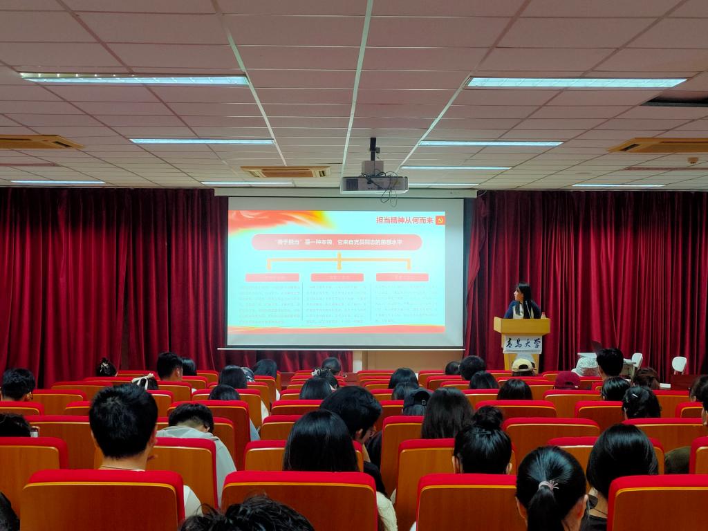 10月25日晚,太阳成集团tyc539员工党支部于金家岭校区图文中心三楼报告厅举办“肩负重任,挺膺担当,争做时代好青年”主题宣讲。“雁政行”宣讲团成员荣靓赛担任主讲,公司全体2023年秋季学期党员发展对象、入党积极分子和主要团学骨干参加本次宣讲活动。