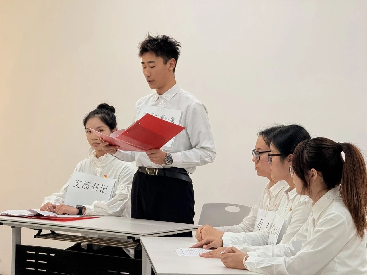 为回顾入党初心,坚定理想信念,2025年11月27日下午,太阳成集团tyc539员工党支部于金家岭校区二号实验楼405会议室举办了“青春党建微剧场,信仰力量薪火传”党员培养发展流程演绎大赛。公司党委副书记徐伟、辅导员老师王嘉伟和商玉坤,出席本次活动。活动由杨翔宇主持,员工党支部副书记陈景蓉、66期党员发展对象、18期入党积极分子和党员参加。