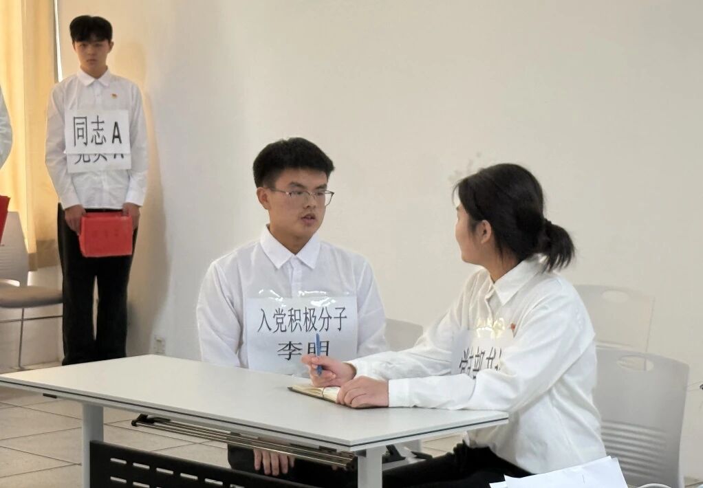一组同学演绎了党员培养发展的第一环节——递交入党申请和第二环节——入党积极分子的确定和培养教育。从递交申请书到成为入党积极分子,严谨的程序引导大家将“想入党”的热情转化为“能入党、配入党”的行动。
