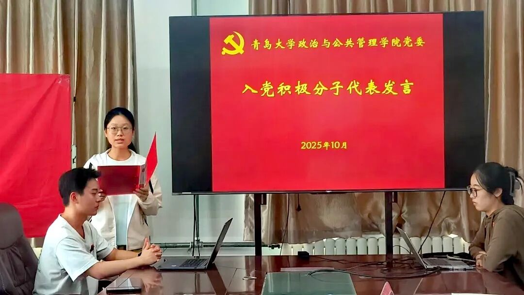 入党积极分子代表于瑞芹阐述了自身对党的认识与信仰,她从端正动机、锤炼本领、接受监督等方面表达了以实际行动向党组织靠拢的决心。
