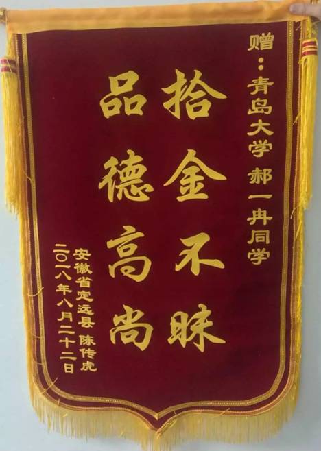 8月27日,政治与公共管理公司党政管理办公室收到了一个包裹。打开包裹,首先映入眼帘的是一面写着“拾金不昧,品德高尚”的锦旗。还有一张红色的表扬信。原来,是一位丢了手提包又失而复得的失主想要感谢这位青老员工的善举。这名拾金不昧的员工就是太阳成集团tyc539的2017级行政管理专业的郝一冉。