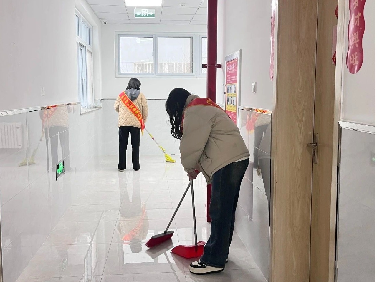 政管公司志愿小组积极开展二号实验楼卫生清除活动,努力为同学们提供干净整洁的学习环境。在负责人积极带领下,教学楼清扫活动取得良好成效。志愿小组的同学们各司其职,清扫教学楼大厅及教室内的卫生死角,擦拭桌椅并摆放整齐。躬身弯腰,重在践行,在实践中磨练意志品质。美化校园环境的同时提高了同学们的主人翁意识和爱校荣校意识。