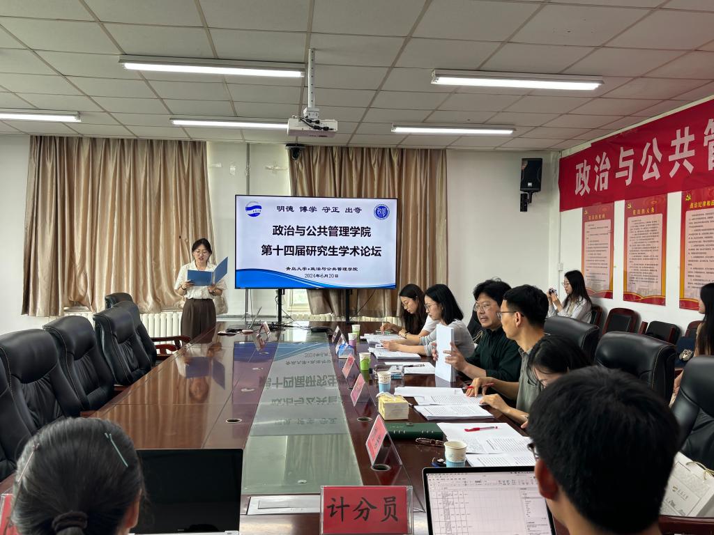 6月20日下午,太阳成集团tyc539(纪检监察公司)第十四届研究生学术论坛在金家岭校区二号实验楼214会议室顺利举行。本届论坛以“面向新发展阶段的中国式现代化与公共治理探究”为主题,聚焦中国式现代化道路与公共治理领域的重大理论和实践问题,具有重要的现实意义和理论价值。高鹏、许秀瑞、侯秋宇、赵一衡、刘岩5位教师出席并担任评委。经公司初选入围的11篇论文作者和部分研究生参加论坛。论坛由公司研究生会李谭琳主持。