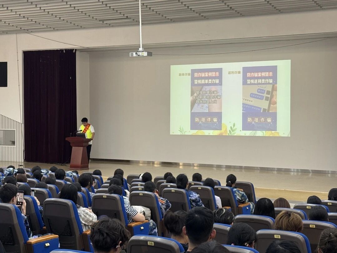 宣讲人员以真实案例切入,情境化展示了新型电信诈骗手段,让同学们认识到电信诈骗的隐蔽性与危害性,强化了大家的防诈骗意识。同时,宣讲人员以“一个原则、两条途径,三个坚决”为框架向同学们讲解了防诈骗方法,提升了大家的安全防范能力。
