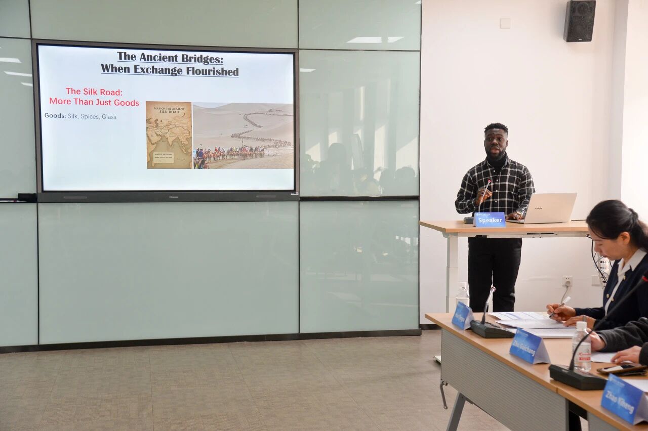 本次论坛分两个阶段进行,朱贵昌,韩庆娜、赵一衡担任点评嘉宾。十三位中外研究生代表围绕论坛主题分别作精彩汇报,议题涵盖各自国家与中国双边关系发展历程、文明交流中的认知偏差与对策、地区文明交流实践对和平共生的影响与意义等诸多领域。三位嘉宾逐一进行点评与提问,师生展开热烈讨论与互动。