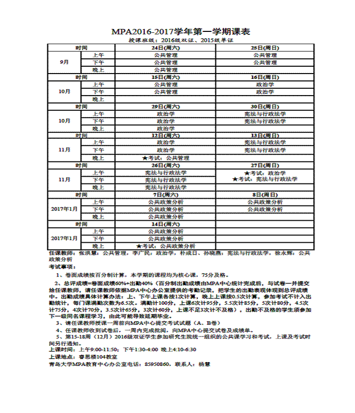 MPA2016-2017学年第一学期课表(2016级)