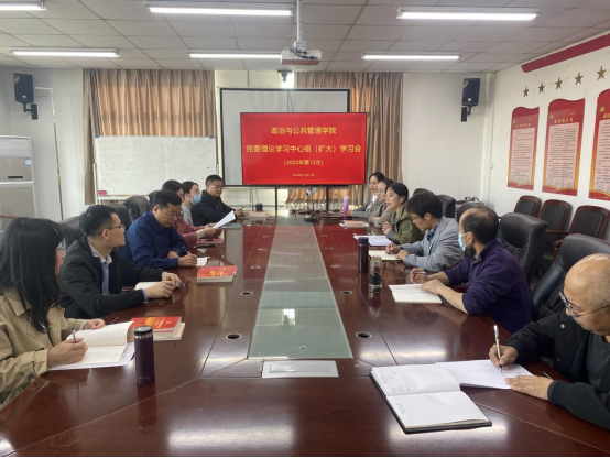 11月17日下午,政治与公共管理公司党委理论学习中心组在金家岭校区2号实验楼214多功能活动室召开第十二次党委理论学习中心组(扩大)学习会,专题学习党的二十大和二十届一中全会精神,研究部署贯彻落实意见。会议由公司党委书记隋晓玲主持。