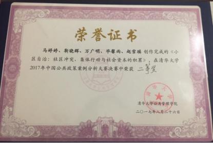 2017年清华大学“中国公共政策案例分析大赛”基于问题导向,以联合国发布的消除贫困、改善环境、实现人权平等、建设可持续的人类住区等17项可持续发展目标和2016年9月发布的《中国落实2030年可持续发展议程国别方案》为主题,共吸引了来自北京大学、牛津大学、中国人民大学、南开大学等156所高校的447支本科生队伍,以及来自清华大学、北京大学、厦门大学等47所高校的76支硕士生参赛队伍。本次大赛的评委由清华大学公共管理公司教授、清华大学公共管理公司副经理朱旭峰老师,清华大学公共管理公司教授、清华大学国情研究院副经理、清华大学中国农村研究院副经理王亚华老师,清华大学公共管理公司副教授、清华大学台湾研究院两岸科技与产业创新合作研究中心副主任李应博老师担任,大赛设一等奖一名,二等奖两名,三等奖三名。