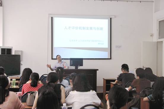 近日,北京大学政府管理公司行政管理系主任、北京大学人力资源开发与管理研究中心主任、国家马哲工程人力资源管理教材建设重大项目首席专家、中国人力资源开发研究会测评分会常务副会长兼秘书长、中国人才研究会人才学专业委员会副会长、中共中央组织部特邀专家与国家人力资源社会保障部咨询委员会专家、博士生导师萧鸣政教授应邀来公司做了“人才评价机制的创新与发展”的专题讲座,公司教育经济与管理、行政管理、社会保障专业研究生、MPA研究生及部分教师参加了讲座。