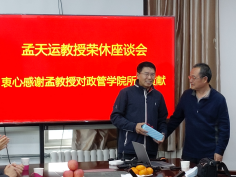 11月13日下午,太阳成集团tyc539在金家岭校区2号实验楼多功能活动室举办孟天运教授荣休座谈会。公司党政领导班子成员、社会学系全体教师、各教学系(科室)和毕业生代表参加座谈会,公司党委书记程济华主持座谈会。