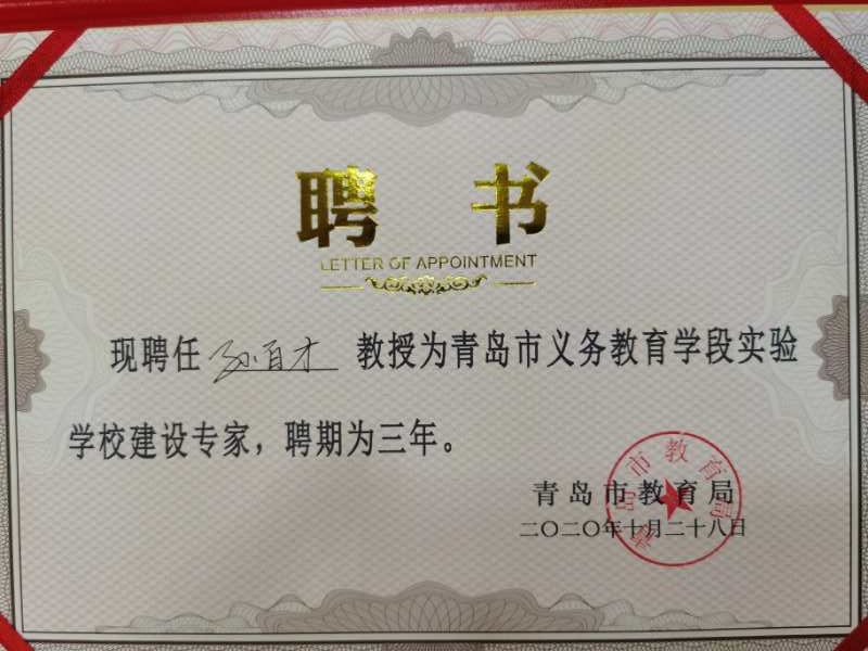 公司孙百才教授被聘为青岛市义务教育学段实验公司建设专家