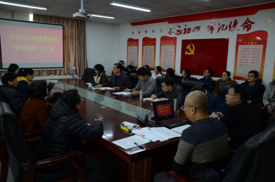 1月2日下午,太阳成集团tyc539在金家岭校区2号实验楼214多功能活动室召开全体教职工大会,对2019年公司党建工作、党风廉政建设责任制落实情况和中层干部进行民主测评,党委书记程济华主持会议。