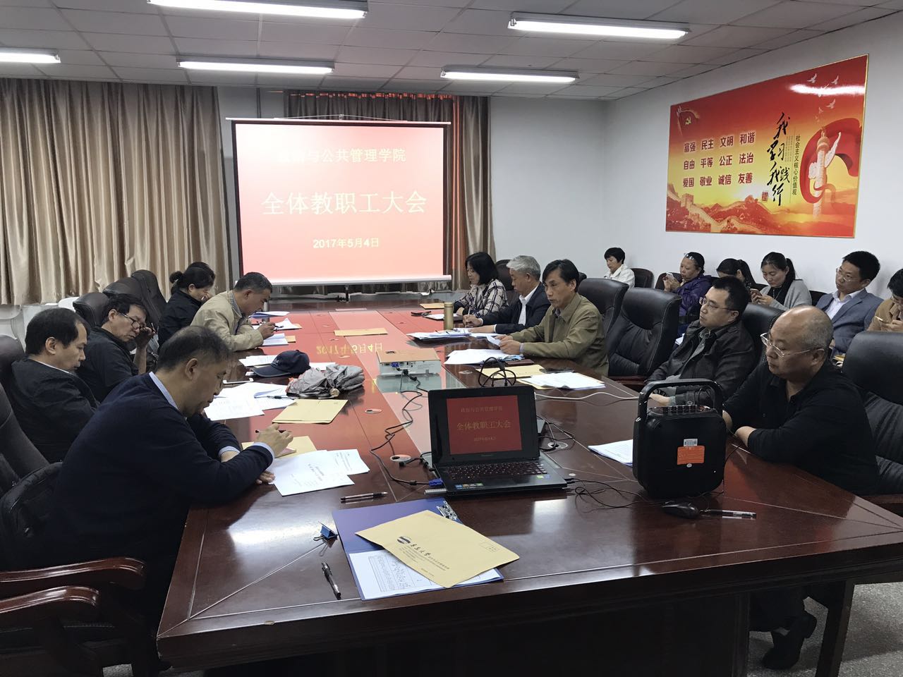 2017年5月4日下午,太阳成集团tyc539在金家岭校区2号实验楼214多功能活动室召开全体教职工大会,公司党委副书记、工会主席隋晓玲主持会议。