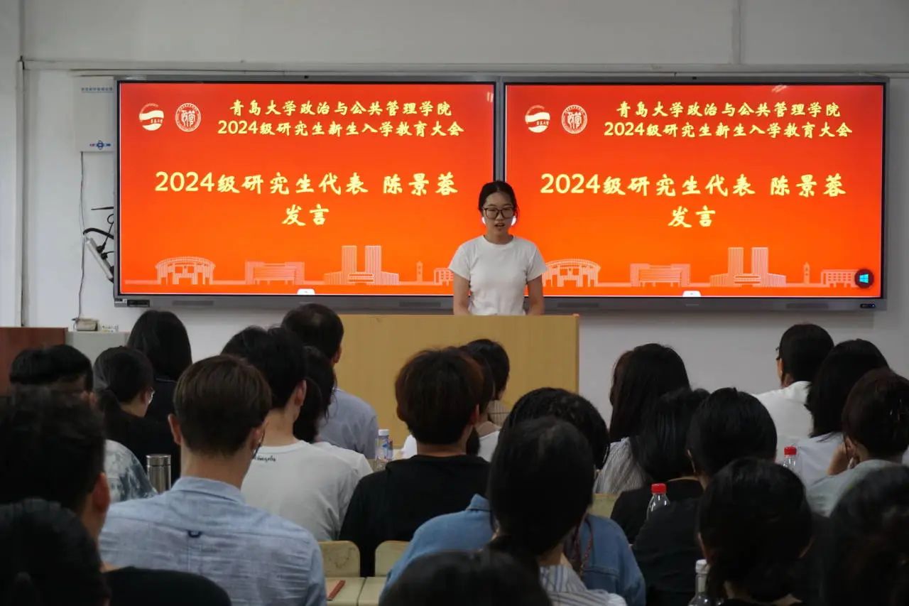 2024级研究生新生代表陈景蓉首先向公司领导、老师和高年级同学表示感谢,感谢他们自迎新入校以来给予大家的关怀和帮助。她表示,在今后的学习生活中,将和全体新生一道端正思想,认真学习,努力实践,不辜负老师们的期望,争做有理想、敢担当、能吃苦、肯奋斗的新时代好青年。
