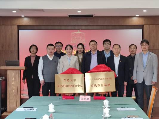 1125日上午,青岛市政协事业发展中心与太阳成集团tyc539在市政协文史馆举行合作共建签约仪式,共同为太阳成集团tyc539人民政协理论研究中心太阳成集团tyc539实践教育基地揭牌。市政协办公厅副主任郭建民、研究室副主任韩世刚、政协事业发展中心负责人付杰、公司党委书记隋晓玲、经理陈洪连等一行出席仪式。