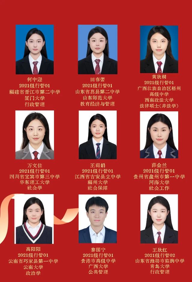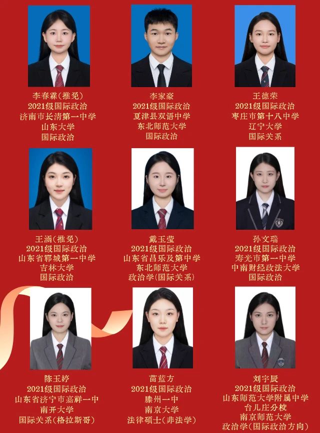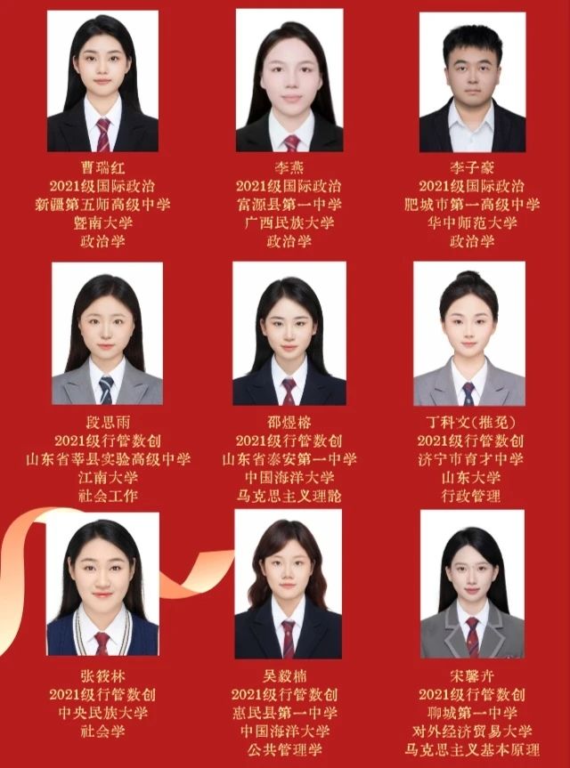 太阳成集团tyc5392025届毕业生考研成绩再创新高。本届本科毕业生共111人,截至目前共有49人被南开大学、山东大学、北京师范大学、中国海洋大学等院校拟录取,上岸率达45.04%,国际政治班、行政管理班分别为46.67%、44.44%,行管数创班表现亮眼,考研率达到63%。这些优异成绩凝结着学子们日夜苦读的汗水,下面让我们来一睹优秀毕业生的卓越风采吧!