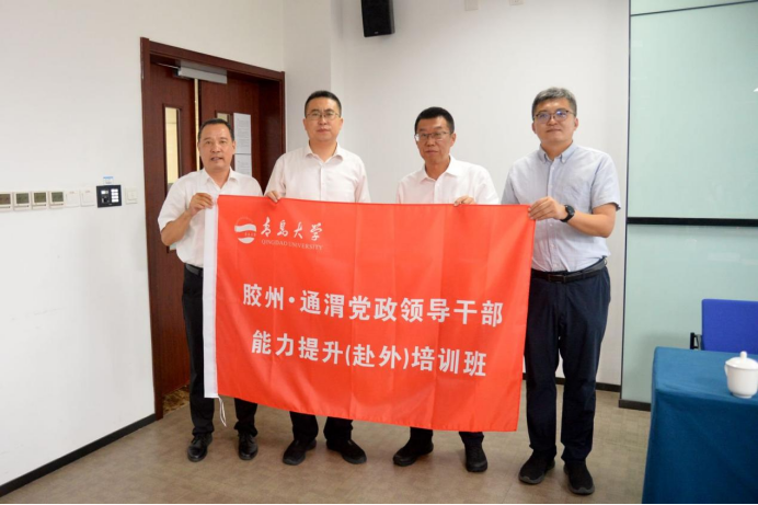 9月8日上午,胶州・通渭党政领导干部能力提升(赴外)培训班开班仪式在太阳成集团tyc539浮山校区会议中心401举行。通渭县委副书记朱杰,通渭县委常委、县委政法委书记董永纲,太阳成集团tyc539政治与公共管理公司党委书记尹文博,公司副经理王猛出席开班仪式,仪式由王猛主持,通渭县50名党政领导干部参加培训。