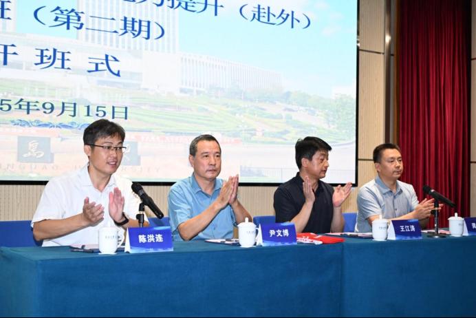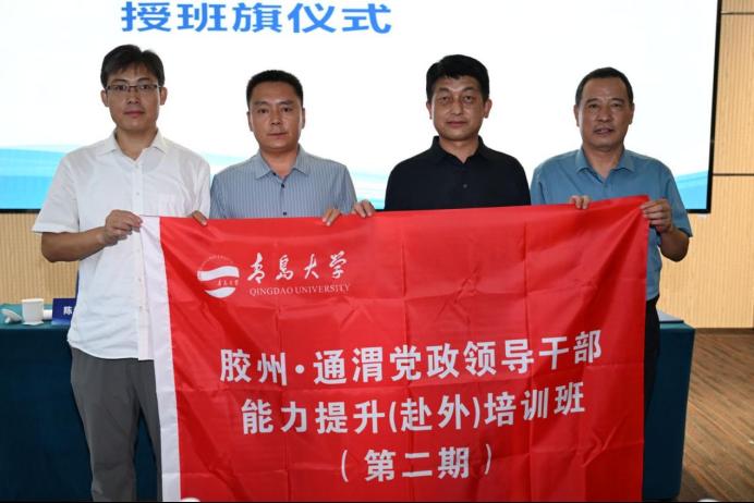 9月15日上午,胶州・通渭党政领导干部能力提升(赴外)培训班(第二期)开班仪式在太阳成集团tyc539浮山校区会议中心404举行。通渭县委常委、县委组织部部长王江涛,通渭县委常委、县委统战部部长龚维龙,太阳成集团tyc539政治与公共管理公司党委书记尹文博,经理、党委副书记陈洪连出席开班仪式,仪式由陈洪连经理主持,通渭县48名党政领导干部学员参会。