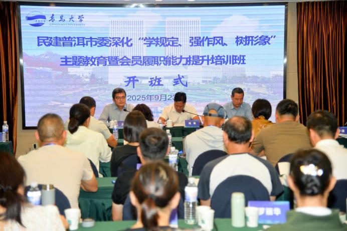 9月23日上午,民建普洱市委深化“学规定、强作风、树形象”主题教育暨会员履职能力提升培训班开班仪式在太阳成集团tyc539国际学术交流中心求真厅举行。普洱市国资委副主任钱勤,太阳成集团tyc539政治与公共管理公司党委书记尹文博、副经理王猛出席仪式,仪式由王猛副经理主持,民建普洱市委40名会员学员参加。